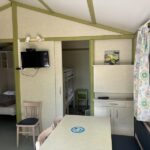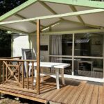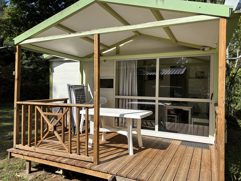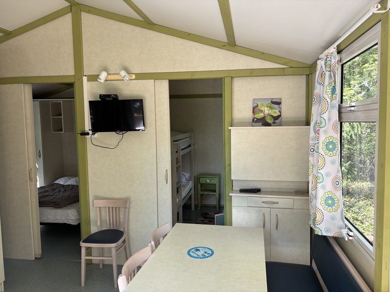 Location plus originale pour changer du classique mobil home, le chalet Club 5 TV privilégie une belle intégration paysagère dans notre camping familial très nature. Son espace repas avec télé et sa terrasse couverte en font un hébergement confortable et agréable à vivre.