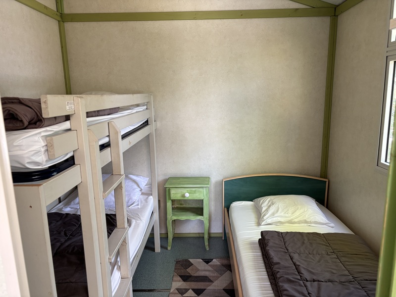 - chambre avec 3 lits simples 80 x 200 cm dont 2 superposés- placard