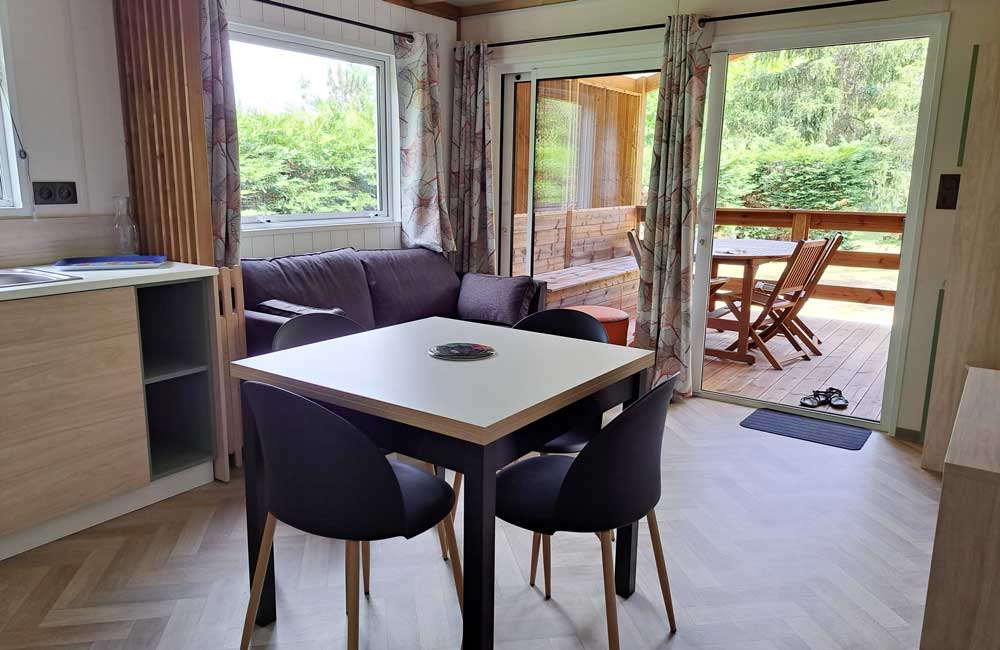 L’option 4 saisons (isolation renforcée + radiateurs dans toutes les pièces) en fait un chalet idéal pour toute la saison, d’avril à septembre.