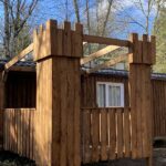 Ce modèle bardé de bois dans un style médiéval dispose d’un séjour et d’une grande terrasse couverte comprenant un salon de jardin et un espace banquette sera idéal pour se détendre après une journée familiale en Dordogne.