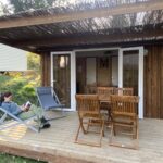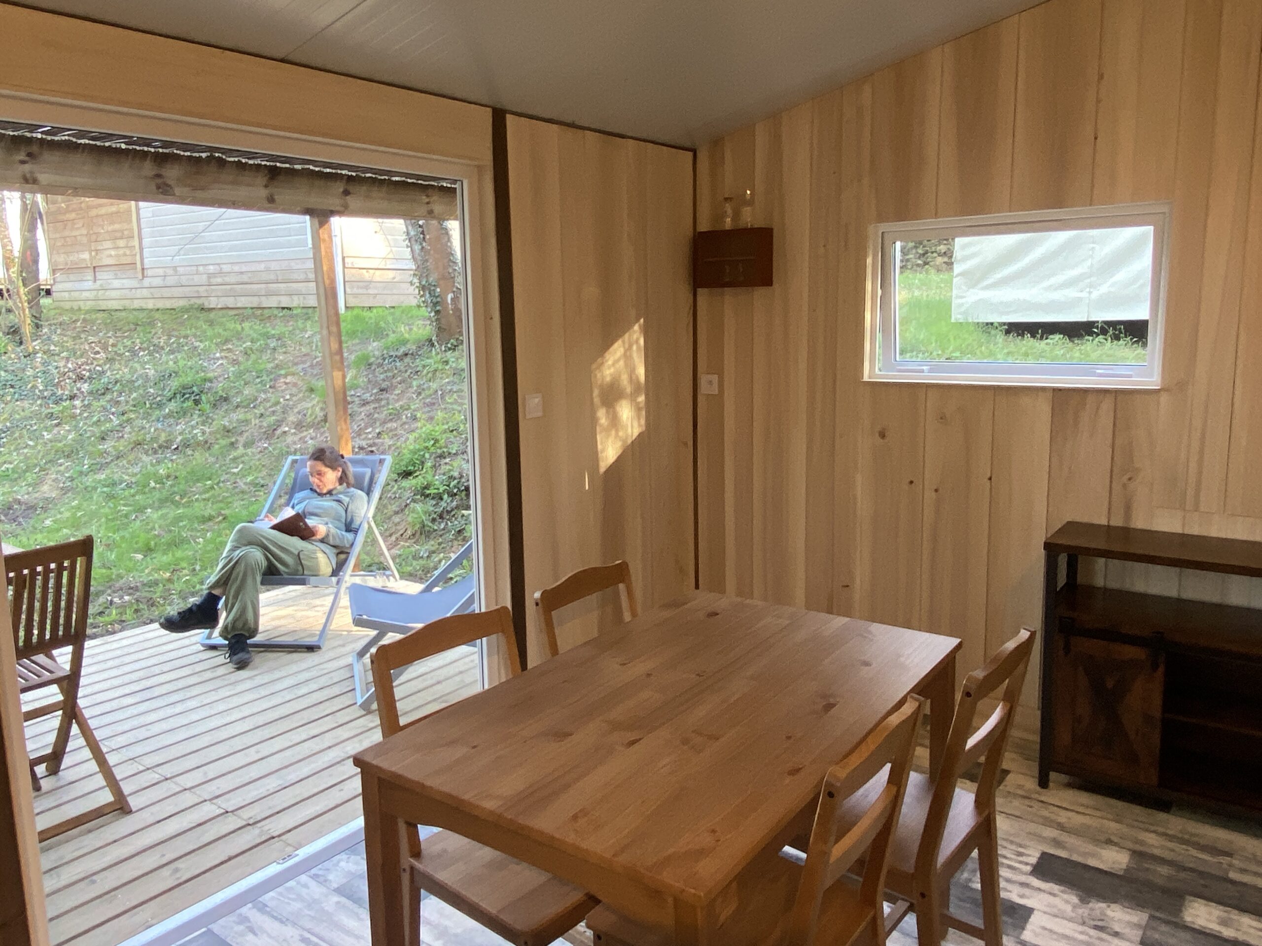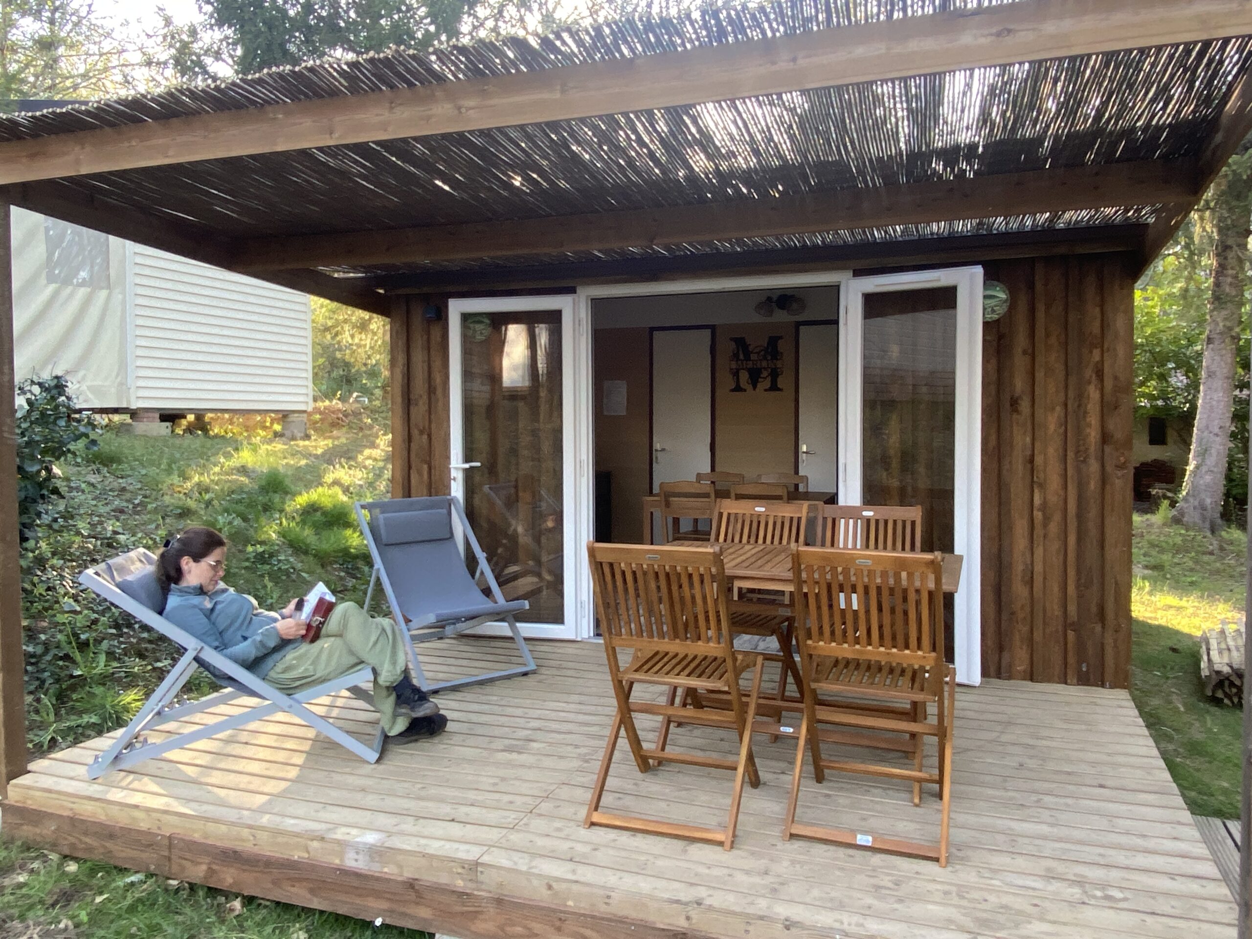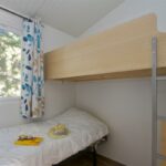 Pour passer de bonnes nuits, vous dormez dans des chambres en dur, identiques à celles d’un mobil home traditionnel. La journée, vous profitez de l’ambiance camping avec un séjour ouvert grâce à sa grande porte vitrée sur une terrasse ombragée.