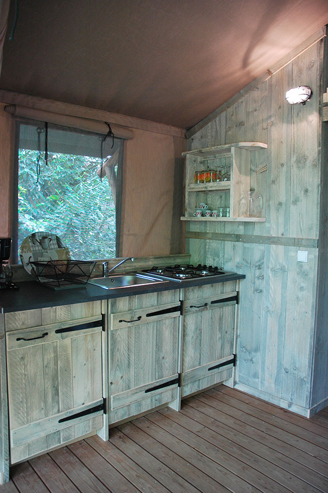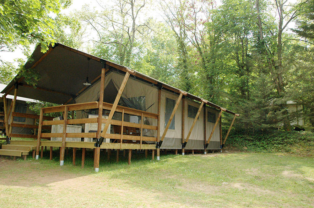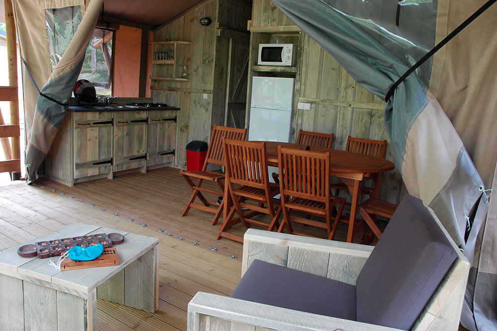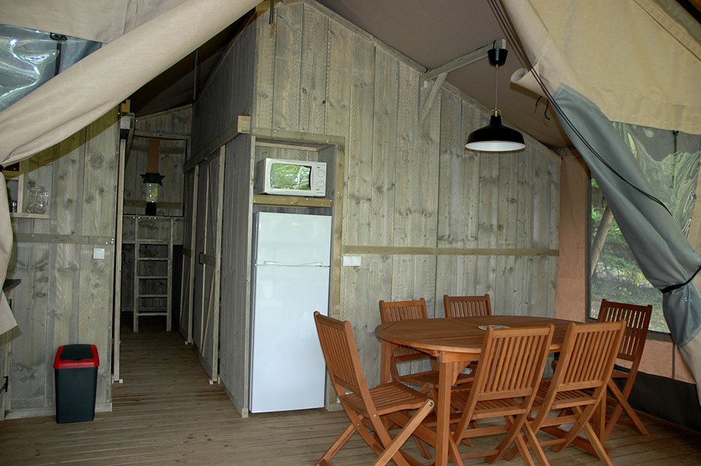 Avec cette tente lodge insolite, goûtez aux plaisirs du glamping en Dordogne ! Son originalité et son ambiance trappeur vous promettent un réel dépaysement pour rompre avec votre quotidien. Vous tomberez sous le charme de son design nature alliant toile et bois, son habitacle très spacieux et d’un très grand confort, sa belle terrasse couverte pour profiter du plein air du matin au soir.