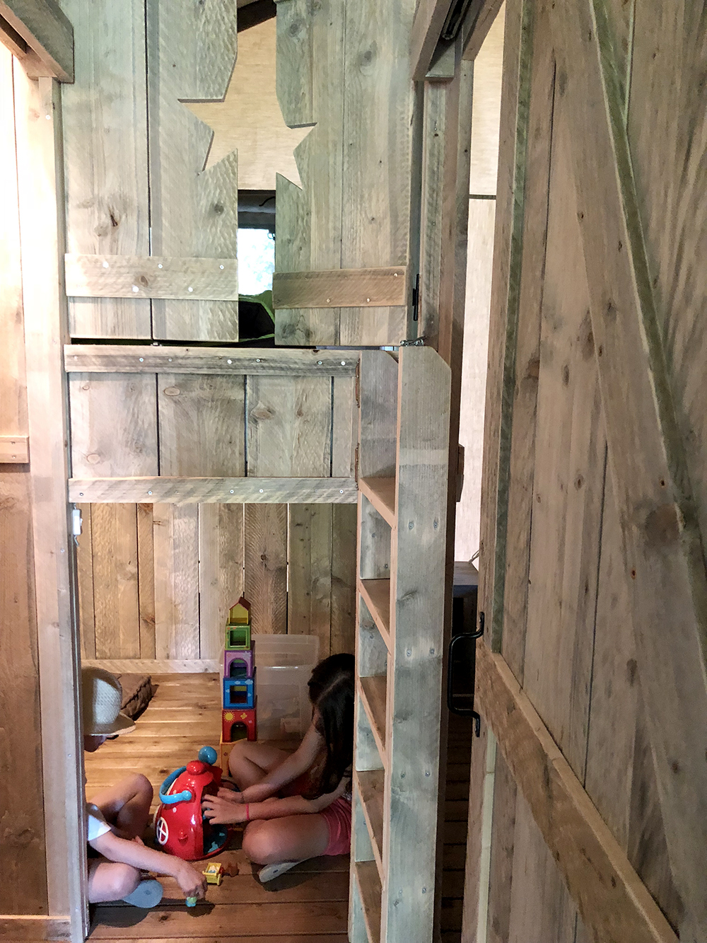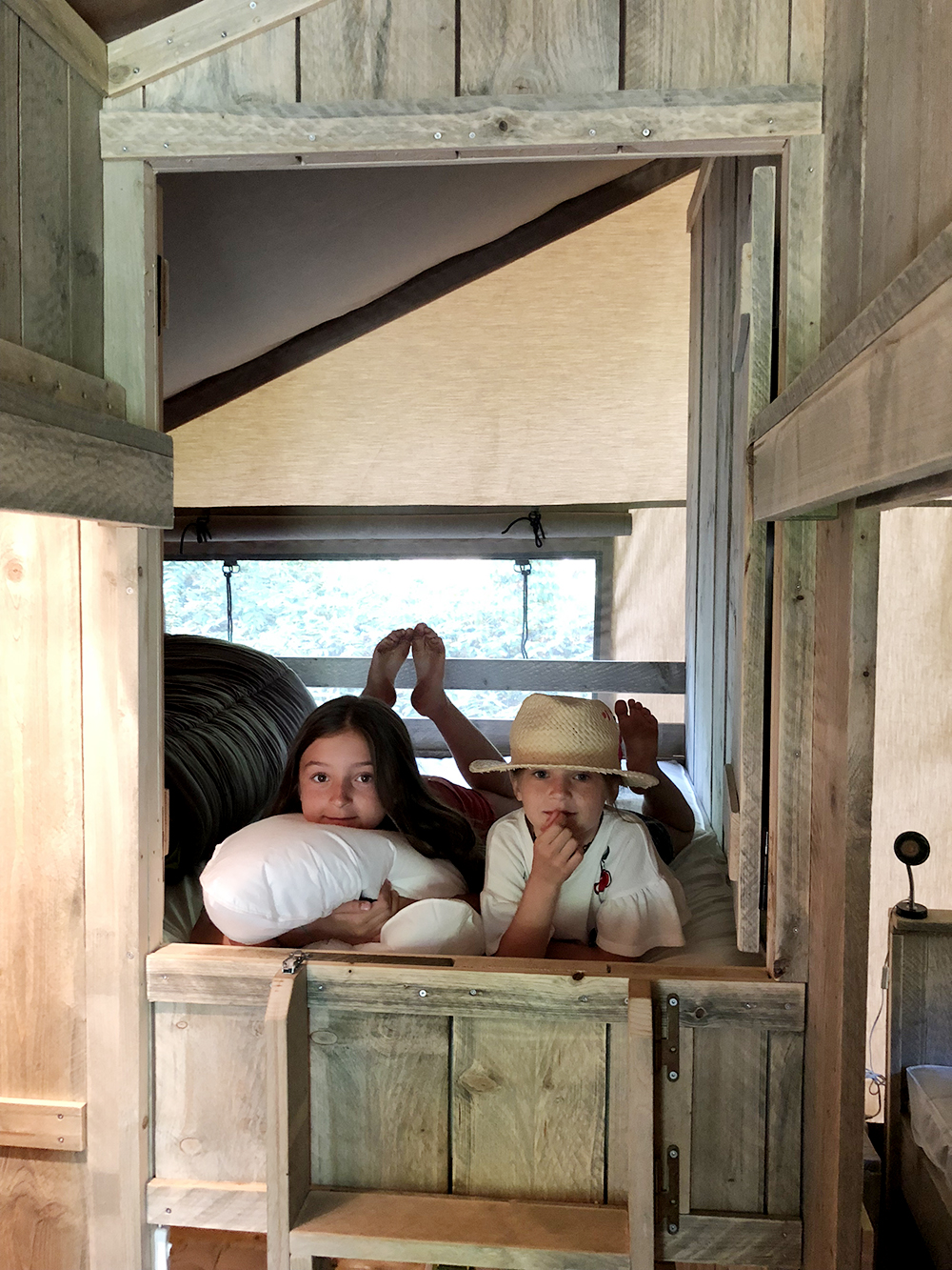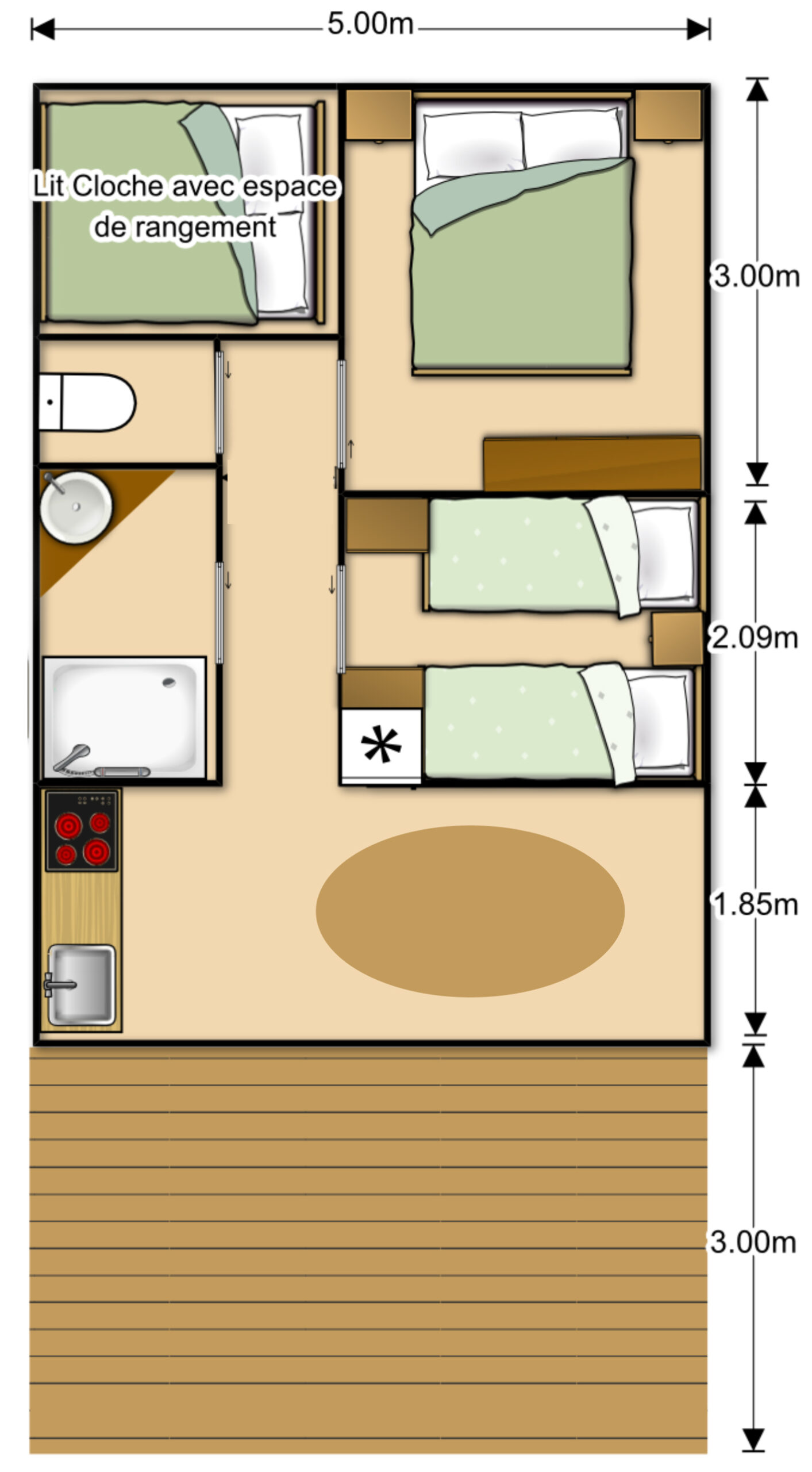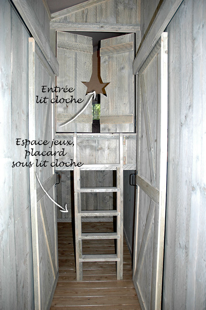 - Chambre lit cloche pour enfants ou 1 couple : 1 lit double 160 x 200 cm – espace rangement/jeux sous le lit cloche (ambiance cabane)